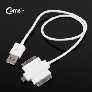 Coms USB 멀티 충전 케이블, iOS 30P, 갤럭시 30P, Micro 5P B 마이크로 5핀, 20cm, White
