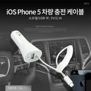 • Coms iOS 스마트폰 5 차량 충전 케이블, 스프링/USB 1P, 5V/2.1A (+0원)