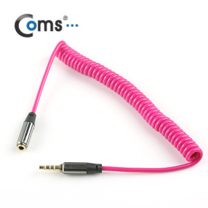 Coms 스테레오 연장 케이블 AUX Stereo 3.5mm 4극 M/F 스프링 Pink 1M