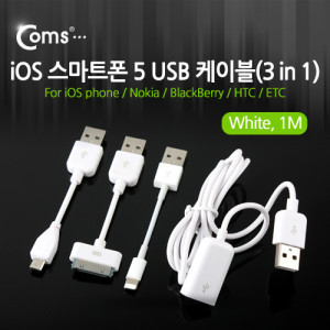 Coms iOS 스마트폰 5 USB 케이블(3 in 1/멀티) White, 1M > 아이폰5 악세서리