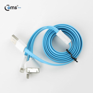 Coms 3 in 1 멀티 케이블(Flat), 1M/Blue, iOS 8핀(8Pin)/30핀/마이크로 5핀(Micro5Pin)