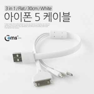 Coms iOS 스마트폰 5 케이블(3 in 1/Flat/멀티), 30cm/White/8핀 > 멀티형