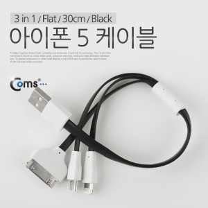 Coms 아이폰 5 케이블(3 in 1/Flat/멀티), 30cm/Black > 멀티형