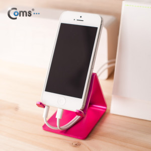 Coms 스마트폰 거치대(알루미늄/Pink),이어폰+충전케이블 동시사용가능 > 탁상용