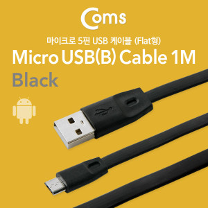 Coms USB/Micro USB(B) 케이블(Flat형) 1M, Black > 마이크로5핀케이블