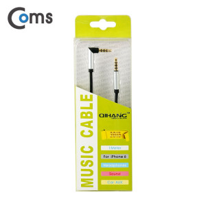 Coms 스테레오 케이블 4극 AUX Stereo 3.5 M/M 한쪽 꺾임(꺽임) 블랙 1M