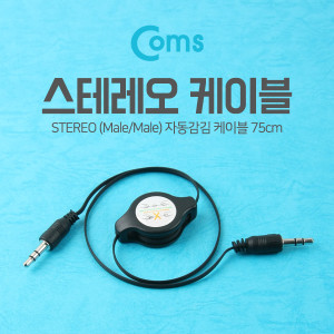Coms 스테레오 자동감김 케이블(M/M) 75cm, Black/Stereo > 스테레오/모노 케이블