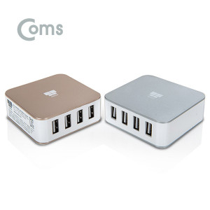 Coms 나비 4포트 멀티/급속 충전기 (NV14-MC400S) / 4Port, MAX25W / 실버