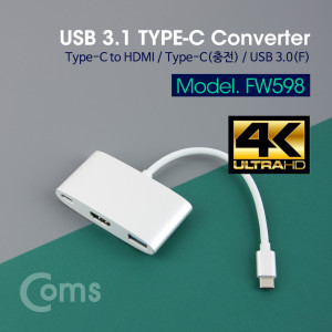 Coms USB 3.1(Type-C) 컨버터, Silver / Type-C to HDMI 변환+C(충전)+USB3.0(F)