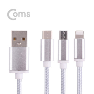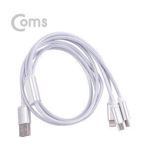 Coms Type C 케이블(3 in 1/스트롱) 1M / Silver - Android / 8Pin (8핀) / Type C > usb 3.1 케이블(Type C)