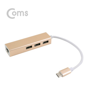 Coms USB 3.1 (Type C) 컨버터 (RJ45+USB 3.0 허브 3포트) > USB/1394허브/컨버터