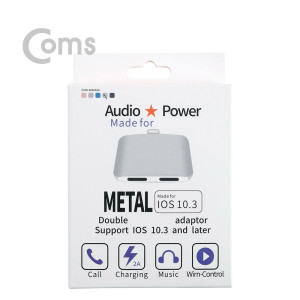 • Coms IOS 8핀 (8Pin) 2 분배기 /  Aux / 8Pin 듀얼젠더 / 이어폰 / 충전 동시지원