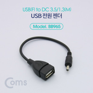 Coms USB 전원 젠더 (USB F to DC 3.5/1.3 M) 20cm > USB 전원 젠더
