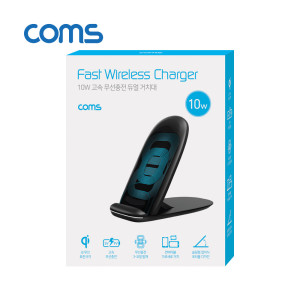 Coms [컴스품질보증] 고속 무선충전기 거치대 / Black / 3코일/ 슬림형접이식 / 10W, 무선 데스크독, 도킹스테이션, QC 퀵차지, 퀼컴, 스탠드, 거치대형, 충전패드 스마트폰