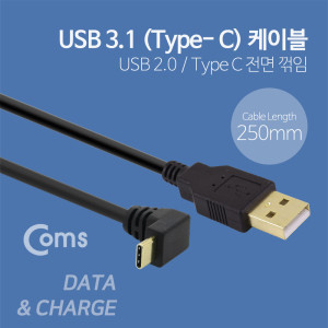 Coms USB 3.1 Type C 케이블 25cm / USB-A(M) to Type C(M) 전면꺾임 > usb 3.1 케이블(Type C)
