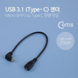 Coms USB 3.1 젠더(Type C)- USB Micro(F)/전면 꺾임(꺽임) C(M) - 25cm > usb 3.1 케이블(Type C)