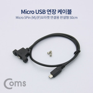 Coms USB 연장 포트 케이블 - Micro 5Pin (M)/(F)브라켓연결용 판넬형, 50cm, Black > 마이크로5핀케이블