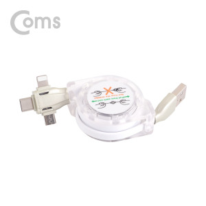 Coms 스마트폰 멀티 케이블(자동감김/3 in 1), Type C/8P/5P, 1M, 화이트-연한 그린