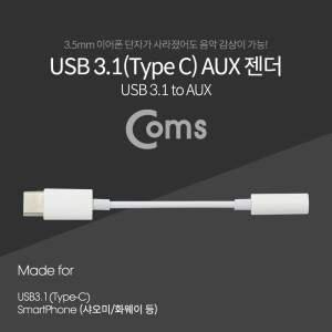 Coms USB 3.1(Type C) Aux 젠더 9cm, 화웨이, 샤오미 전용 (국내폰 사용불가) > USB 3.1 젠더(Type C)
