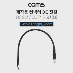 Coms DC 전원 케이블(제작용), DC 플러그(M), 25cm DC 2선 5.5/Black > 전원 연결 용품