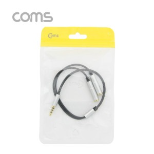 Coms 스테레오 Y 케이블 30cm 3.5mm 4극 M to F x2 2분배 Metal Silver