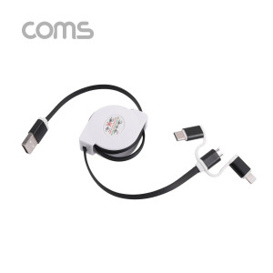 Coms 스마트폰 멀티 케이블(3 in 1/자동감김) 1M, Black / USB 3.1(Type C)&Micro 5P&iOS 8P 요약정보 및 구매