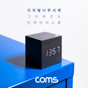 Coms 디지털 LED 나무시계(초미니형 / 정사각형 / 화이트 LED / 알람기능포함 / Black)