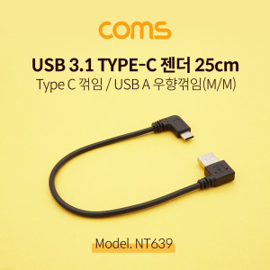 Coms USB 3.1 젠더(Type C) 꺽임 / USB 2.0 A (M/M) 우향꺾임(꺽임) / 25cm > USB 3.1 젠더(Type C)
