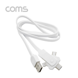 • Coms 스마트폰 멀티 케이블(회전식/3 in 1) / USB 3.1 (Type C)/ iOS 8P /Micro 5P - White