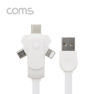 Coms 스마트폰 멀티 케이블(회전식/3 in 1) / USB 3.1 (Type C)/ iOS 8P /Micro 5P - White