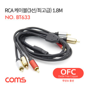 Coms RCA 케이블(3선/최고급) / 24K Gold / OFC(무산소동선) / 1.8M > RCA 3선