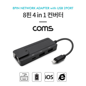 Coms 8핀 4 in 1 컨버터 8PIN to USB 2Port(마우스와 키보드 사용), RJ45 LAN 이더넷 > 아이폰 Lightning 케이블
