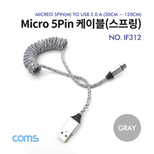 Coms Micro 5p 케이블 스프링 / Gray / 30~120cm > 마이크로5핀케이블