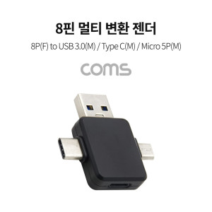 Coms 8핀 멀티 변환 젠더(T형) / 8P(F) to USB 3.0(M) / Type C(M) / Micro 5P(M) > USB 젠더