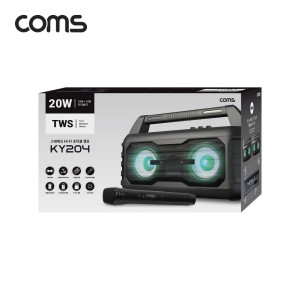 Coms 휴대용 블루투스 Hi-Fi 스테레오 스피커 앰프 20W / 듀얼마이크/TWS지원/가정용노래방 > 블루투스 스피커