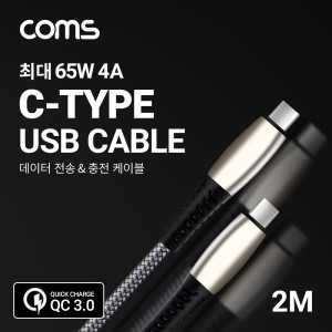 Coms USB 3.1 Type C 케이블 2M Gray 65W 4A C타입 to C타입 퀵차지 QC3.0
