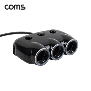 Coms 차량용 3구 멀티소켓 / 시거소켓 3구 / USB 2포트 / 개별 스위치 / 120W / 12V 24V 호환 > 차량 충전용