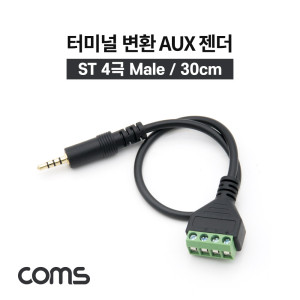 Coms 터미널 변환 케이블 30cm / 3.5mm 스테레오 4극 Male to 4Pin 터미널 블록