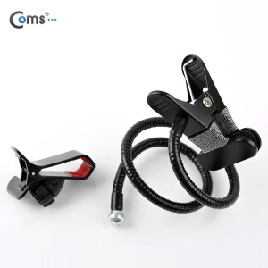 Coms 스마트폰 거치대, 탁상/침대 거치, 집게형/Black, 플렉시블(Flexible, 자바라)
