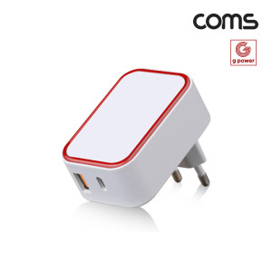 Coms G POWER 고속 충전기 2구, 가정용, USB 3.1(Type C)+USB A, 화이트, C to 8P 케이블 1.5M 요약정보 및 구매