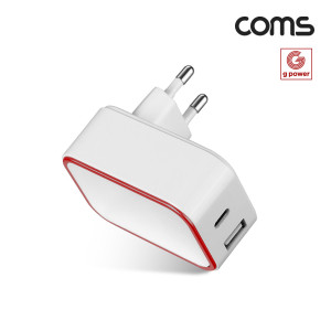 • Coms G POWER 고속 충전기 2구, 가정용, USB 3.1(Type C)+USB A, 화이트, C to 8P 케이블 1.5M (+0원)