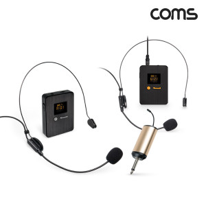 Coms 2채널 UHF 무선 마이크(채널A, 채널B 헤드셋마이크)+핀마이크+리시버(수신기)+C타입젠더 세트 > 마이크/앰프