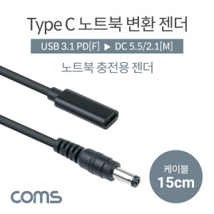 Coms USB 3.1 Type C 노트북 전원변환 젠더 케이블 15cm C타입 PD to DC 5.5 2.1
