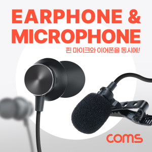 Coms 유선 이어폰(외장 핀마이크 포함), 분리형, 유선, 소형, 미니, 클립형, Stereo 3.5mm AUX, 스테레오 4극, 1.5M,