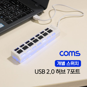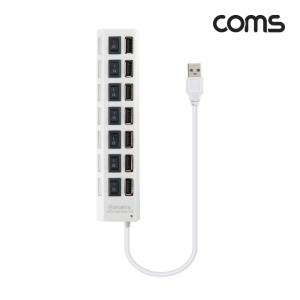 Coms USB 2.0 7포트 허브 (무전원 / 개별스위치), 보조전원