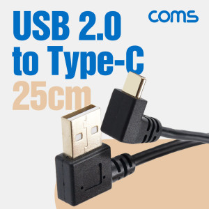 Coms USB 3.1 젠더 Type C USB 2.0 A(M) to C타입(M) 25cm 전면 우향 꺾임 꺽임 고속충전 및 데이터 전송 > C to A 케이블