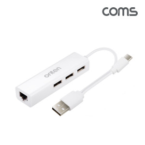 Coms USB 3.1 Type-C 허브+이더넷 컨버터 RJ45 10/100Mbps 2 in 1, USB 2.0 3포트, 3port, C타입 > 유선랜카드