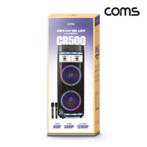 Coms UHF 이동식 스피커 앰프 무선 블루투스 순간최대출력 1200W UHF마이크 2EA 채널A 채널B