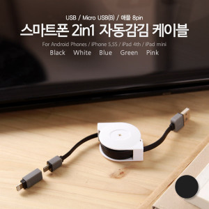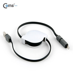• Coms IOS 8핀(8Pin) 케이블, 2 in 1, 자동감김 White / 꼬리물기/Micro 5P/90cm