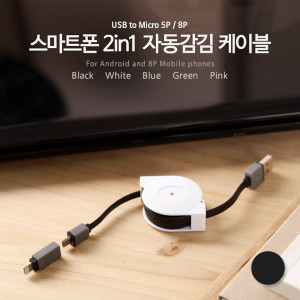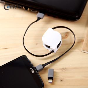Coms 스마트폰 2in1 멀티자동감김케이블(Micro 5Pin (5핀)/8Pin)Black/충전 > 자동감김/분리형